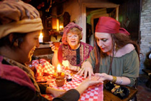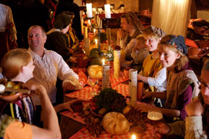 A troubadour will perform songs from the past and present. While a lavish meal is served and your drinking cup is continually refilled, other medieval figures will make their appearance. You run the risk of encountering a fortune teller, a witch, or a monk.